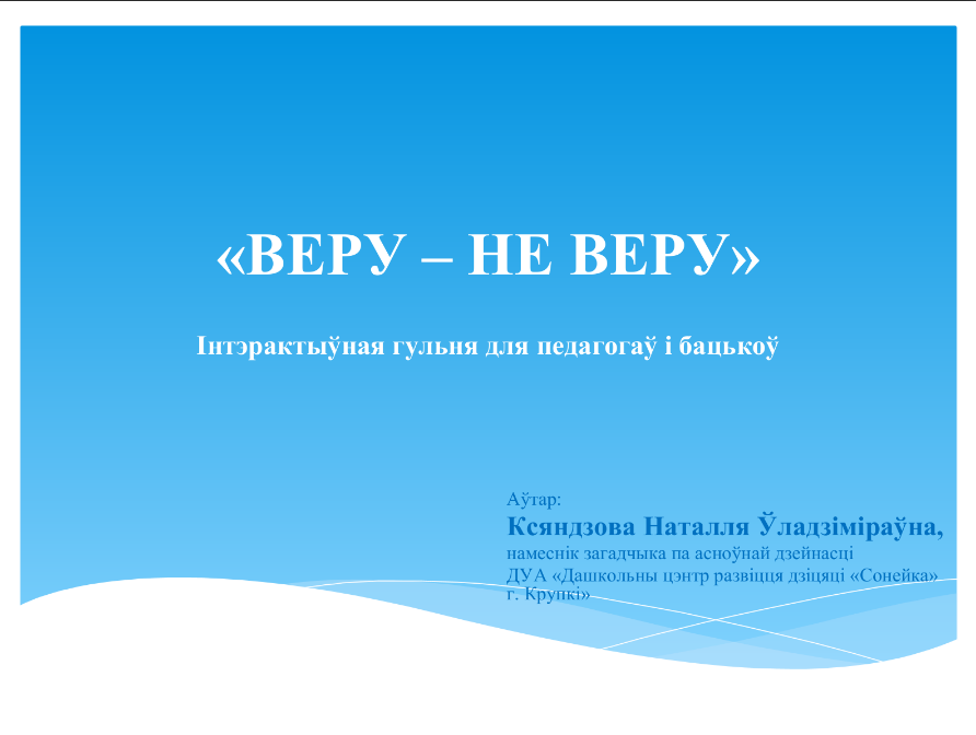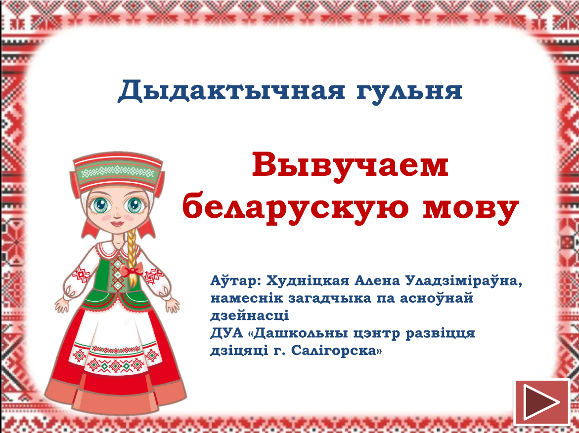 ІНТЭРАКТЫЎНАЯ ДЫДАКТЫЧНАЯ ГУЛЬНЯ ЯК СРОДАК ДАЛУЧЭННЯ ДЗЯЦЕЙ ДАШКОЛЬНАГА ЎЗРОСТУ ДА БЕЛАРУСКАЙ НАЦЫЯНАЛЬНАЙ КУЛЬТУРЫ